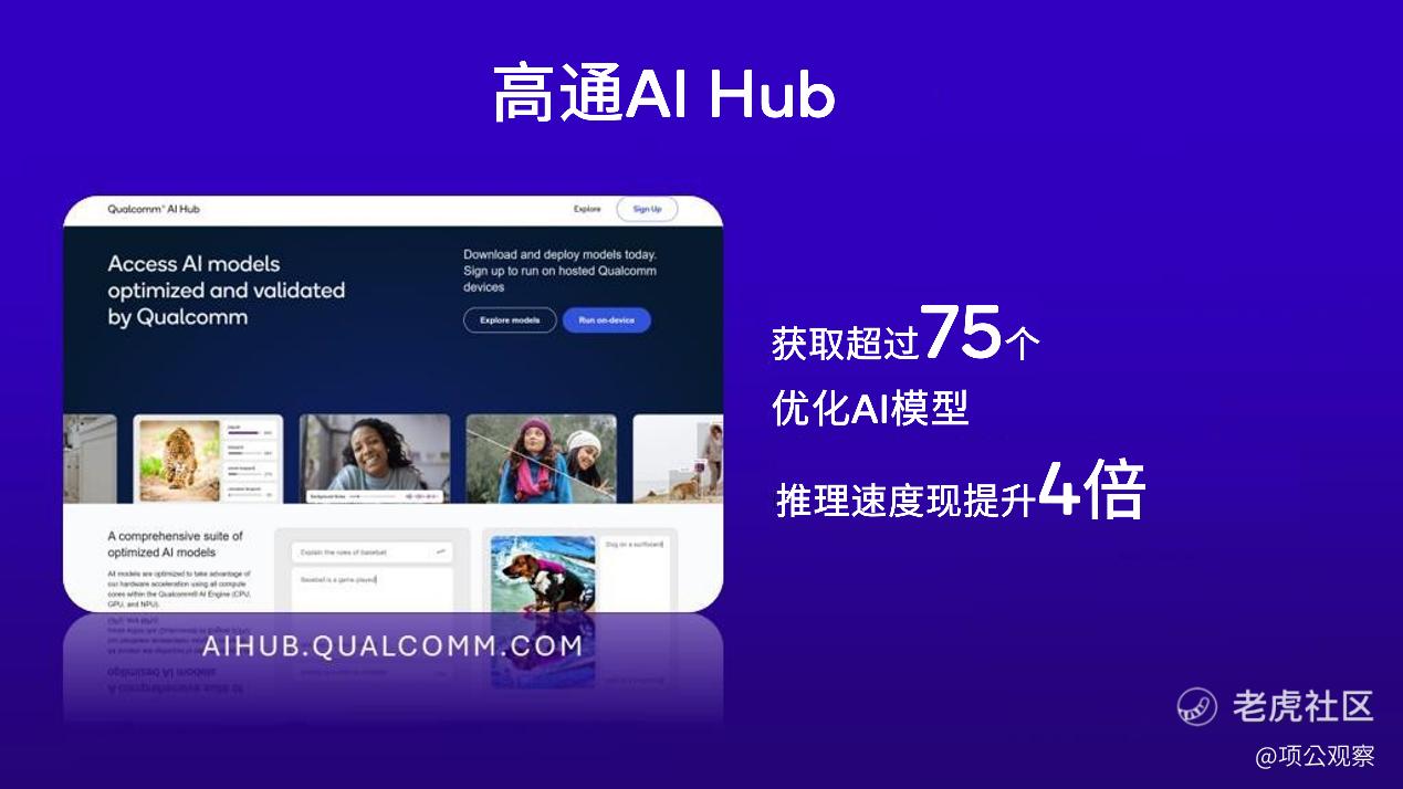 首先是高通AI引擎。它包括Hexagon NPU、Adreno GPU、高通Oryon CPU(PC平台)、高通传感器中枢和内存子系统。专门的工业设计、不同部件之间良好的协同,这款异构计算架构为终端侧产品提供了低功耗、高能效的开发平台。