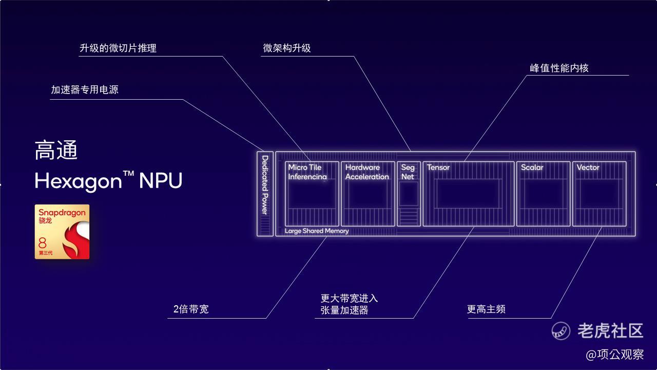 图:第三代骁龙8的Hexagon NPU以低功耗实现更佳的AI性能