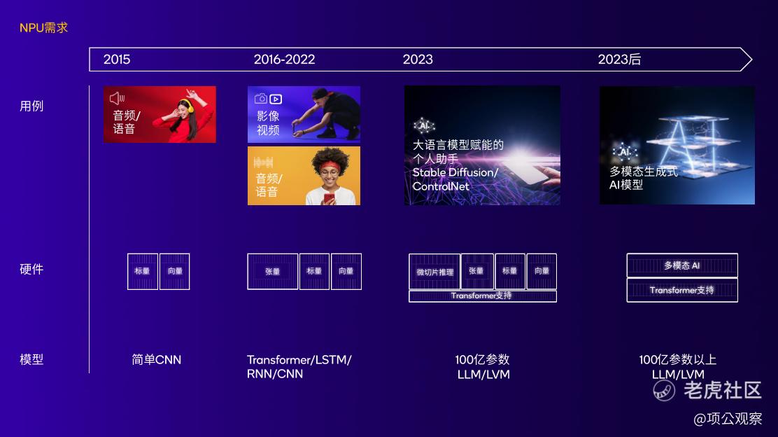 图:NPU随着不断变化的AI用例和模型持续演进,实现高性能低功耗 来源:高通