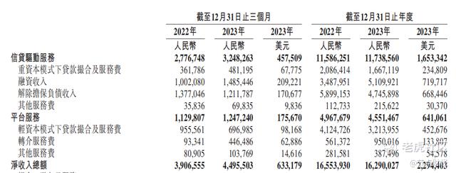 2023年末,奇富科技平台服务下贷款撮合规模为2710.2亿元,较2022年的2311.31亿元增长17.3%,约占放款总额的57%;该分部录得收入45.51亿元,同比减少8.4%,占公司总收入的比重继续倒退至27.94%;信贷驱动服务收入117.39亿元,同比微增1.3%,占公司总收入的比例拔高至72%。