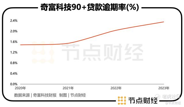 拆分各季度,2023年3月末、6月末、9月末、12月末,奇富科技90+逾期率分别为2.18%、1.84%、1.82%、2.35%。