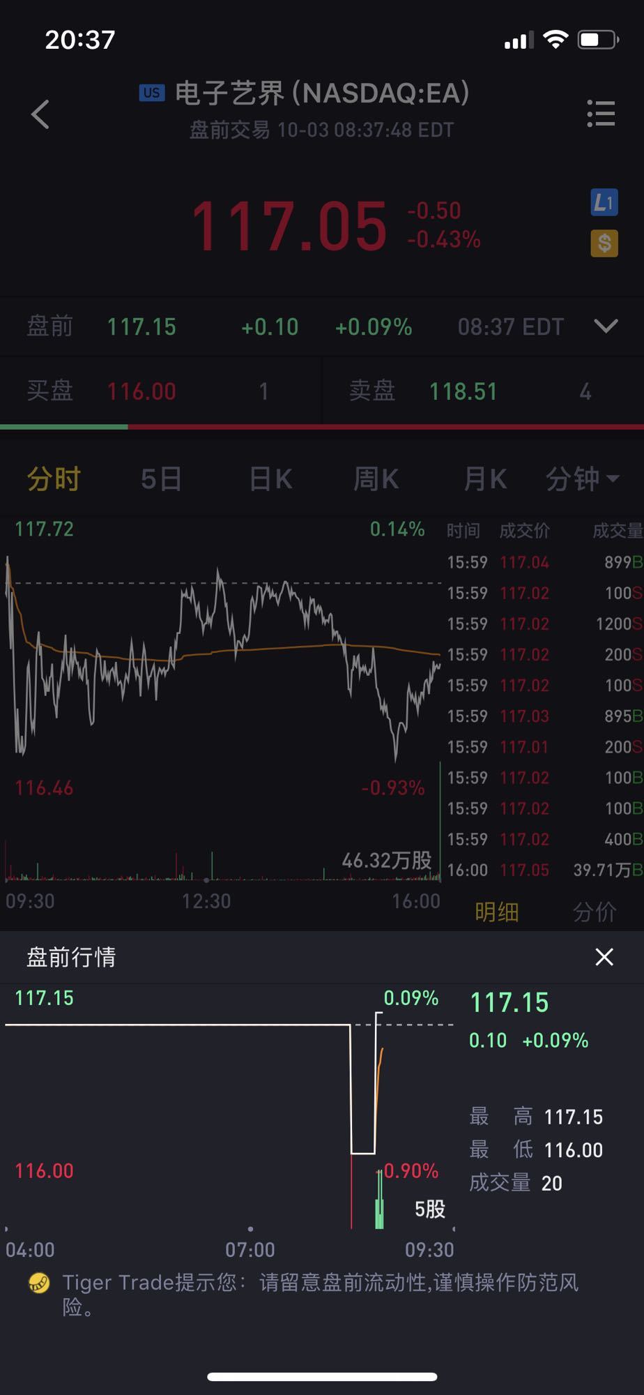 $电子艺界(EA)$ 5股。。。。我这个迷你散都能做庄了╮( ̄⊿ ̄")╭