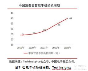 此外,由于近年来半导体行业制程提升的速度放缓,手机性能提升也接近瓶颈,换机周期也不断加仓,促使国内用户手机换机周期从2019年的24个月,提升到了2023年的40个月,这促使手机电池的使用寿命不断提升,对充电需求越发频繁。