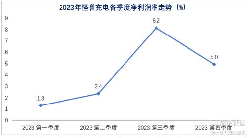 怪兽充电的净利润率,在2023年一季度到四季度,分别为1.3%、2.4%、8.2%、5.0%。