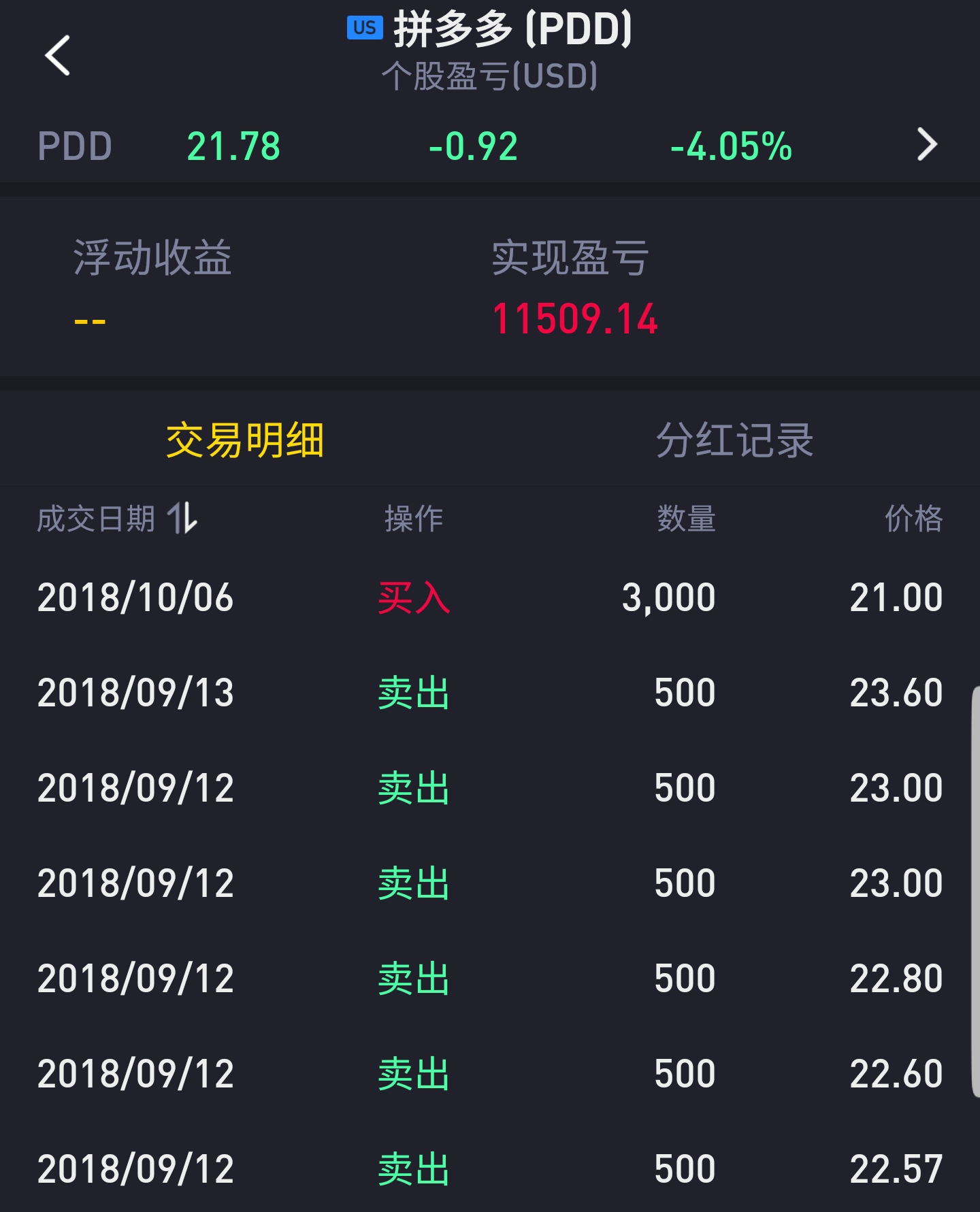 $拼多多(PDD)$ 前两天浮亏两万刀没抛,21买入的单子忘记取消半夜成交了,pdd,稳