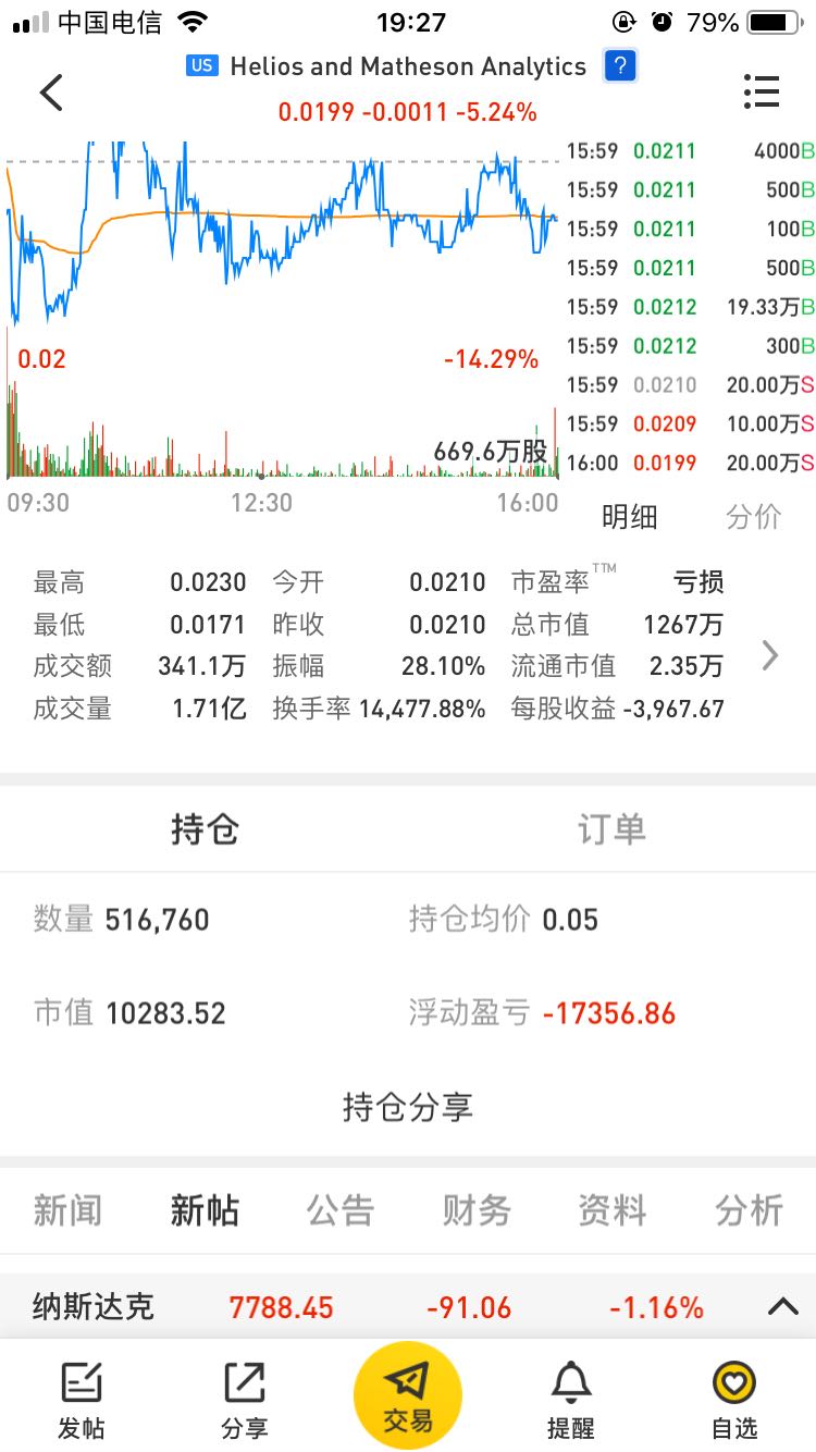 $Helios and Matheson Analytics(HMNY)$ @买啥才能赚钱呢 哥们还在么?割了?