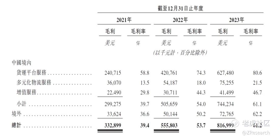 GTV全球最高,增长速度亮眼:公司是2023年上半年全球闭环货运交易总值(GTV)最大的物流交易平台,特别是在中国内地的市场份额高达61.0%。