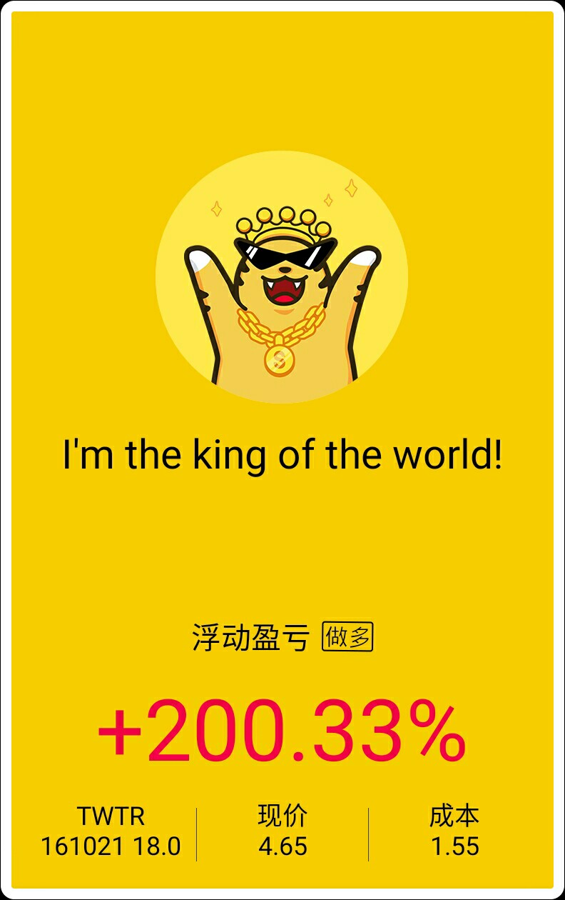 $TWTR 20161021 18.0 CALL(TWTR)$ 昨天还亏一千,今天就盈利两千了,先出一部分 #不服来战#