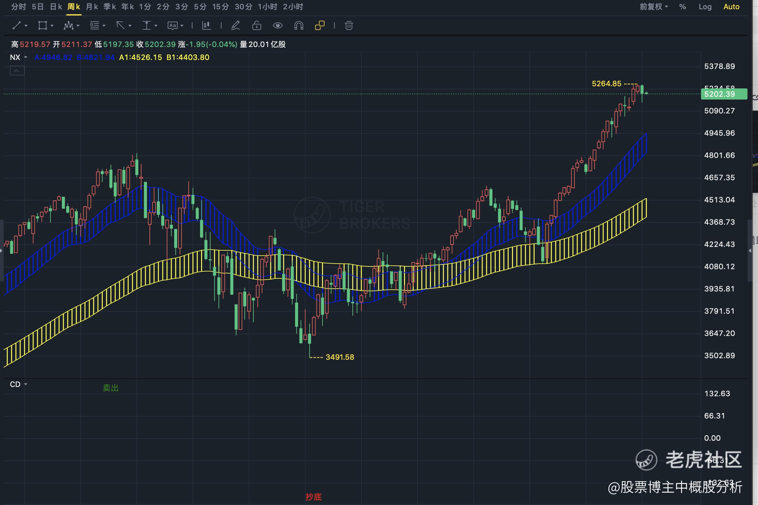 今年美股必然有一波暴跌,经济衰退还从未对现在股价上。那么等周级别标普提示卖出,美股就会暴力回调。这之前,就会还涨。