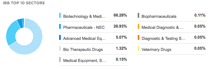 再则,IBB的前十大持股板块中,除了66.28%在生物科技板块,在医药板块的比重接近27%,比XBI高了不少。