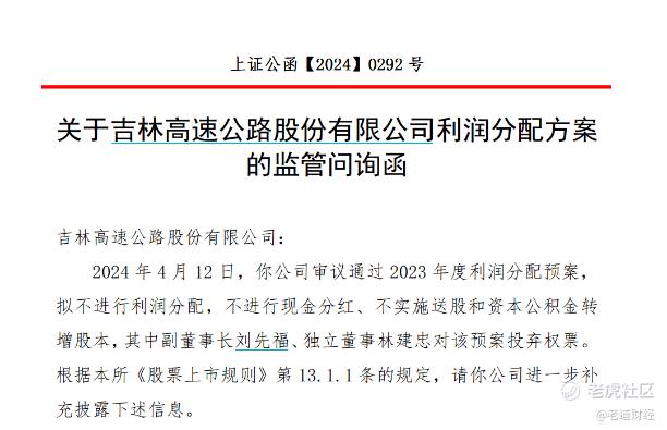 同时上交所也发函质问为啥连续多年“一毛不拔”,要求说明公司是否存在大额资金闲置的情况。吉林高速回应称有资金安排计划,但这样的解释在投资者看来显然不够有说服力。毕竟现在新“国九条”和一堆证监系统的配套措施出台,都特别看重上市公司怎么分红,分红太少就得被标上风险警示(ST)。