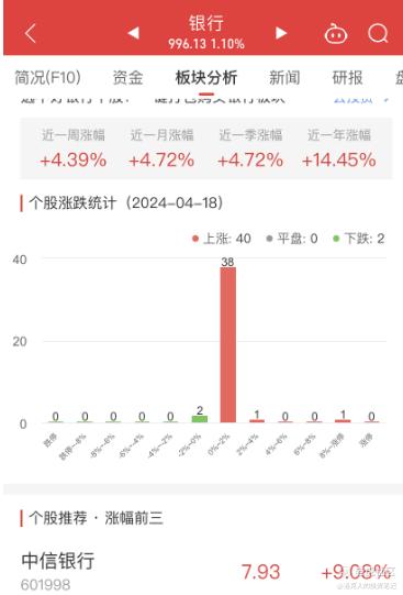 这次带领指数试图冲上3100点的权重主要是银行。银行行业2天涨了接近4%,行业中的中信银行两天涨了接近20%。另外保险行业当日整体涨幅也优于大盘。