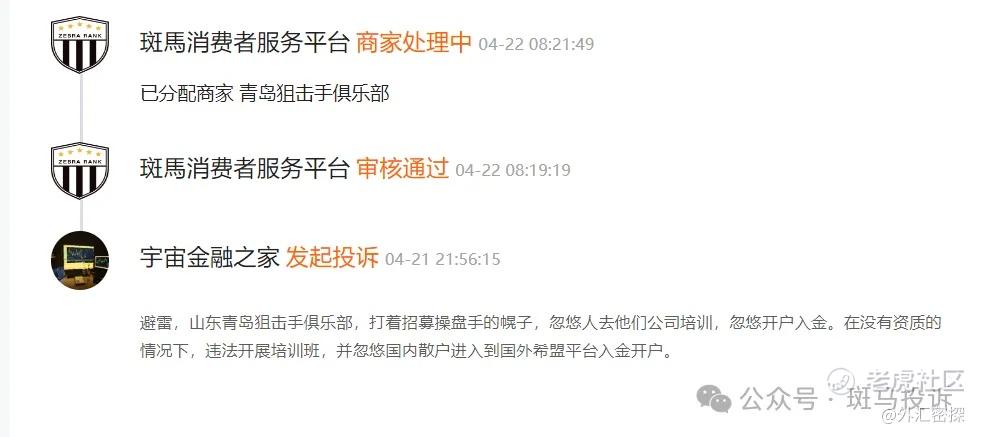 这不,近期,就有斑马投诉的用户来反馈,青岛狙击手俱乐部工作室,以招募操盘手的名义,挂羊头卖狗肉