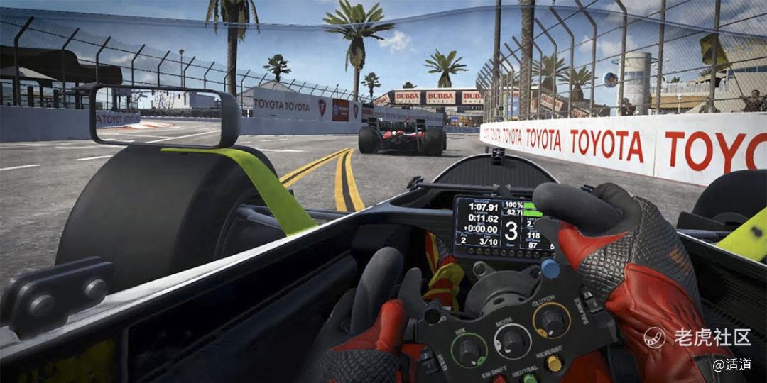 VR设备领域也是如此。目前,适合使用在赛车模拟器场景的VR设备需要算力强劲、清晰度俱佳(这样才能清晰地分辨赛道错综变化的复杂性),因此在一些专门支持VR版的游戏中,凭借其高清分辨率、高刷新率的VR设备,已经确立了其领先地位。