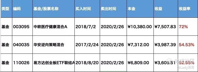 看来看去,锁定了收益最好的三只,落袋为安。