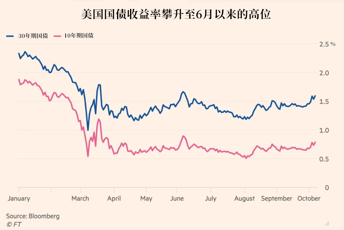 投资者正逐渐意识到美国长期国债价格下跌的风险,因为他们预计,在11月的总统大选之后,美国经济复苏将更加强劲,政府支出也将大幅增加。