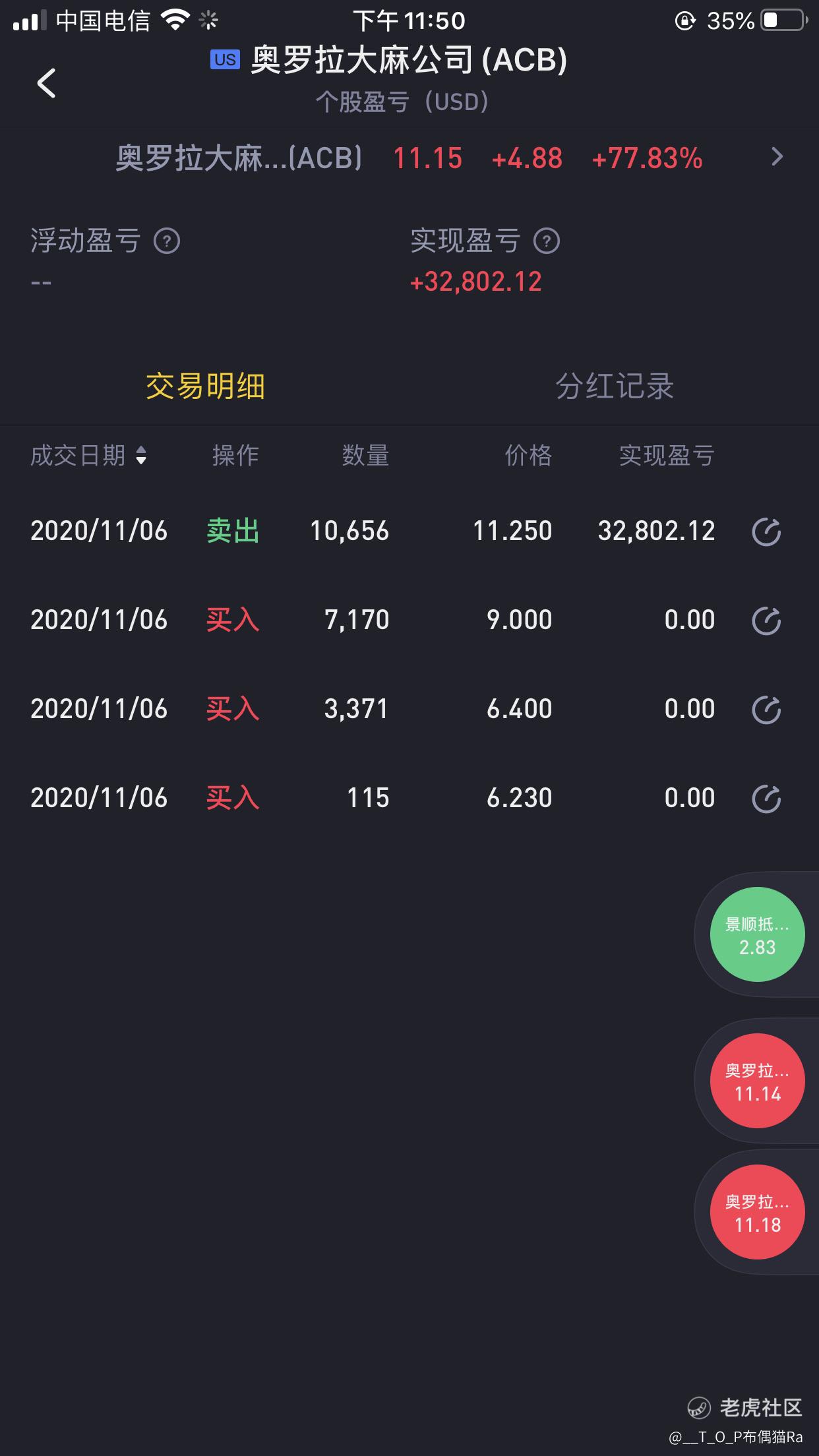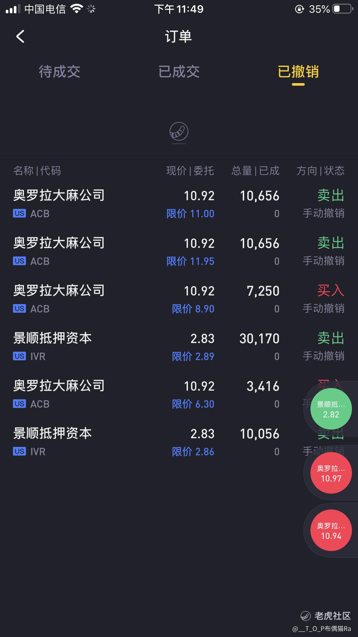 $奥罗拉大麻公司(ACB)$$景顺抵押资本(IVR)$感谢拜登跟大麻送出的一发火箭🚀,顶点挂单差那几秒接不了 祝留下的继续发财💰, 昨晚盘开盘涨20幅度想着去买进 怪自己去搞该死的廉价劳动活,错过了头等肉 等收盘钱全部被压着垃圾票盘后没人接货..只能融资搞了一波小肉 开盘立刻卖了那垃圾票全仓买进,几个月时间终于是吃到一口好吃了[想吃]
