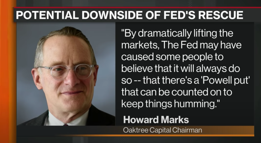 “通过大幅提振市场,美联储可能已经让一些人相信它将一直这样做——可以指望“鲍威尔对策”(Powell put)让市场保持活跃。”