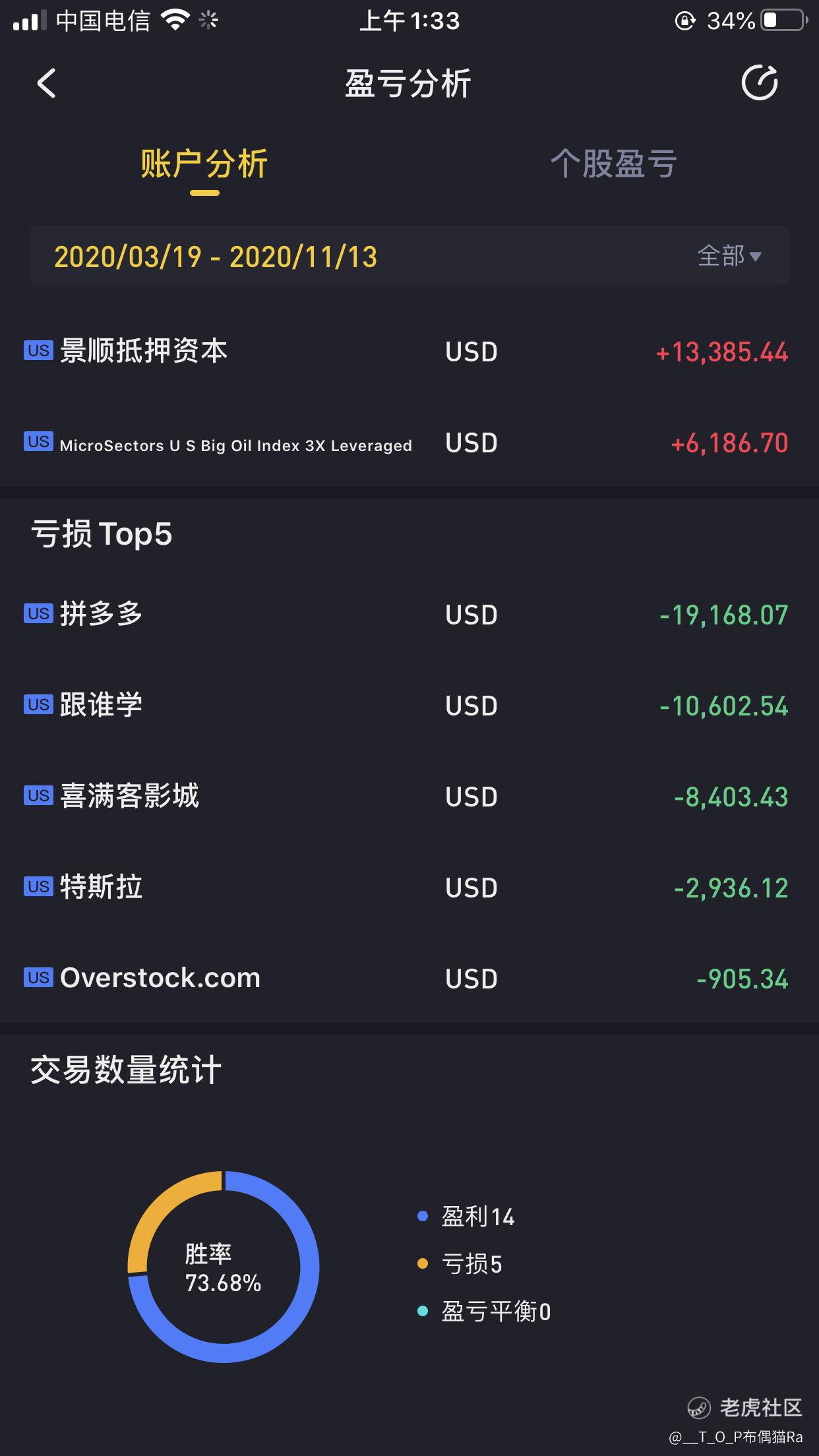 $拼多多(PDD)$$跟谁学(GSX)$$蔚来(NIO)$$小鹏汽车(XPEV)$$理想汽车(LI)$认输离场 胜率73% 做多百分百胜率从没失手 做空也是百分百的亏损率!以后从此不再做空!特别是中概股!风险太大 上次差点被跟谁学清0 没有k线可言 都是在骗炮杀空军筹码 这次好了伤疤忘了疼 又再次被中概股教育了波大学费[流泪]
