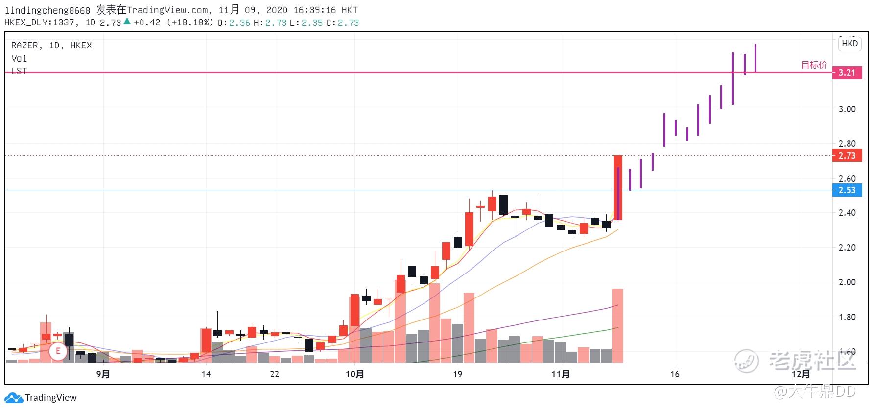 2020年11月5日写下$雷蛇(01337)$操作计划笔记:底点:1.58,二底:2.26,高点:2.53,目标价:3.21,试单区间:2.26-2.53,止损位:2.26,正式入场位:2.53以上。(如图1所示)