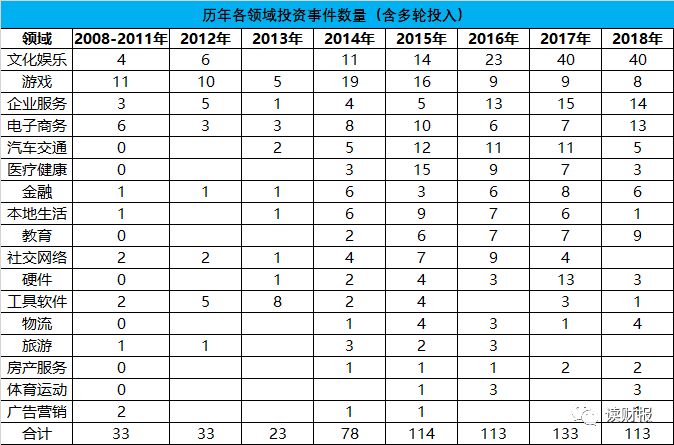 从中也可以看出,腾讯在文化娱乐版块的布局逐年加深,而在游戏方面近年似有收窄之势,企业服务(ToB业务)随着近年机会增多,腾讯的投资项目数也在增加。