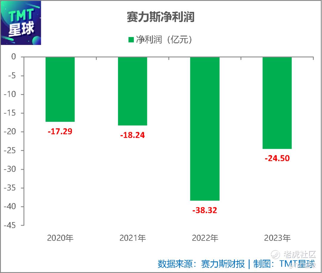 根据财报,2020-2023年赛力斯净亏损分别为17.29亿元、18.24亿元、38.32亿元和24.50亿元。换言之,赛力斯四年共亏掉了98.35亿元。