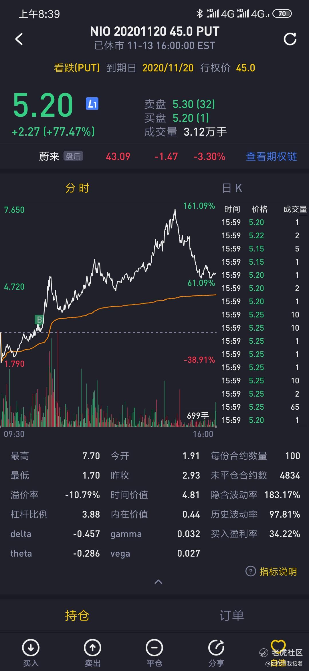 昨晚涨到近50的时候蔚来正股卖了一些,剩下100股,这时我为了对冲这100股下跌的风险买了两手45的put(同时为了补仓正股又卖出三手35的put,想着要么跌到35补仓要么跌不到35白嫖权利金)。我发现这两手put赚的钱基本可以和100股正股下跌损失的钱相抵消,如果是三手的话可能对冲效果更好(整体盈利)。不过我并不是通过精确计算做的决策,而是凭感觉买了两手,碰巧对冲上了而已。所以想请教各位高手,以这100股蔚来正股和45的put为例,对冲时要计算买几手,应该用什么公式,套哪些数据?$蔚来(NIO)$