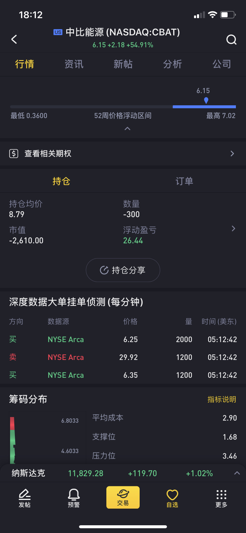 看跌 4.4毛钱 试一下空单翻倍的感觉!!
