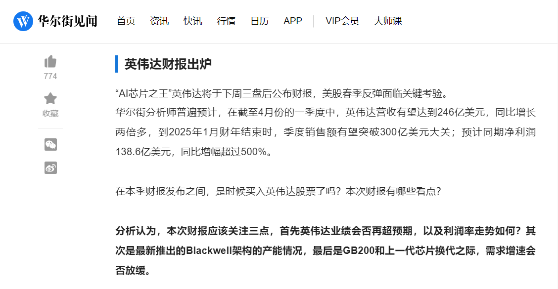 $英伟达(NVDA)$ 估计 这次财报超预期,但是也不能超过所有人的预期,所以不会涨的太多,但是对于未来的展望,公司会给一个超大预期,就会涨的很多,甚至到1100以上,再加上会有拆股的说法,会涨的更多一些,试目以待吧
