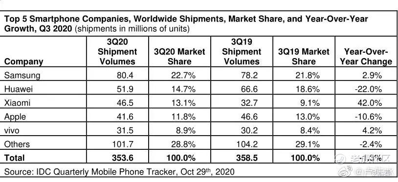 IDC全球销量Q3小米4650万,世界第3,同比增长42%