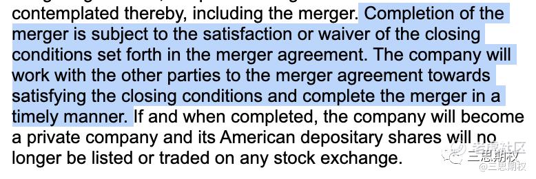 收购价格为16美元,为什么当前股价仍是15.92美金?原因有二,第一是资金有成本,即使收购完成概率是100%,但什么时候完成仍是个未知数,也许一个月,也许三个月或更久。那现在以15.92买入,不算交易费,利润也只有0.08/16=0.5%。第二,虽然易车股东99.9%投票赞成私有化,但易车仍需要满足私有化协议全部条件。我们虽然不知道私有化协议中列出了哪些条件,但是从披露内容来看,收购应该是大概率完成但是并不是100%确定。