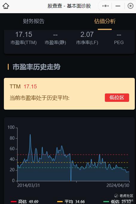 再看估值,滚动市盈率为17倍,当前市盈率处于历史平均:低位区。
