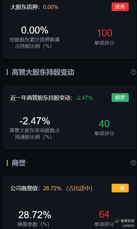 从风险角度看,经营活动现金流三年总和:50%,数据优秀。商誉值29%,还能接受;大股东没有质押;高管大股东减持-2.47%,卖的有点多。除开大股东减持的比例比较大,其他的倒是没有大风险点。