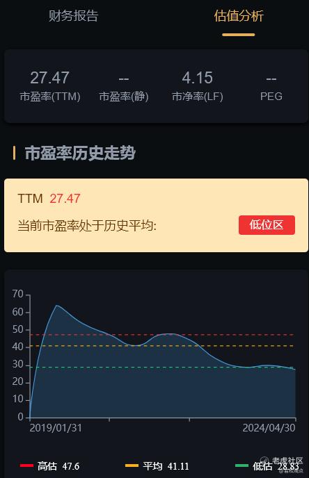 再看估值,当前滚动市盈率为27倍,当前市盈率处于历史平均:低位区。