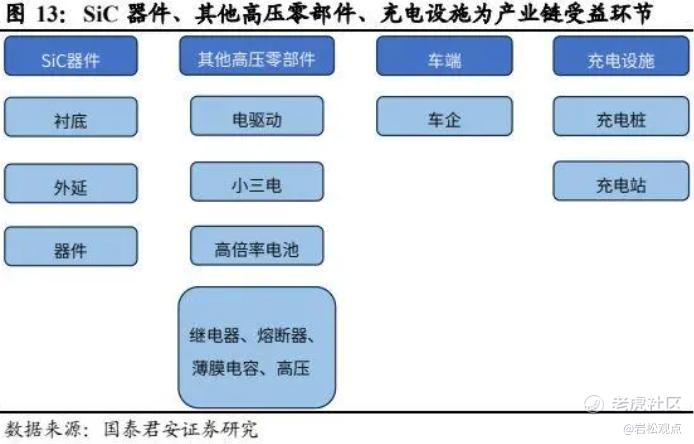 随着 800V 高压平台放量,主驱逆变器、DC/DC 、OBC、直流充电桩等部件将是未来SiC 器件规模应用的主要场景。