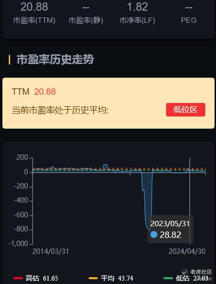 再看估值,滚动市盈率为20.9倍,当前市盈率处于历史平均:低位区。