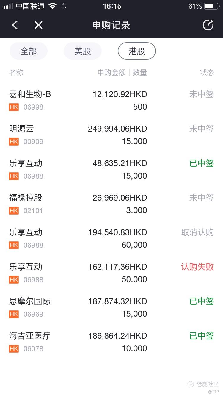 今年6月开始接触股票,共参与打新14次,中签9次。其中,港股参与6次,中签3次,共盈利2.4w(中签的乐享还没卖就没计算在内),最赚钱的是$思摩尔国际(06969)$,收益2.2w。美股参与8次,中签6次,共盈利约200美金,最赚钱的是燃石医学,收益76美金。