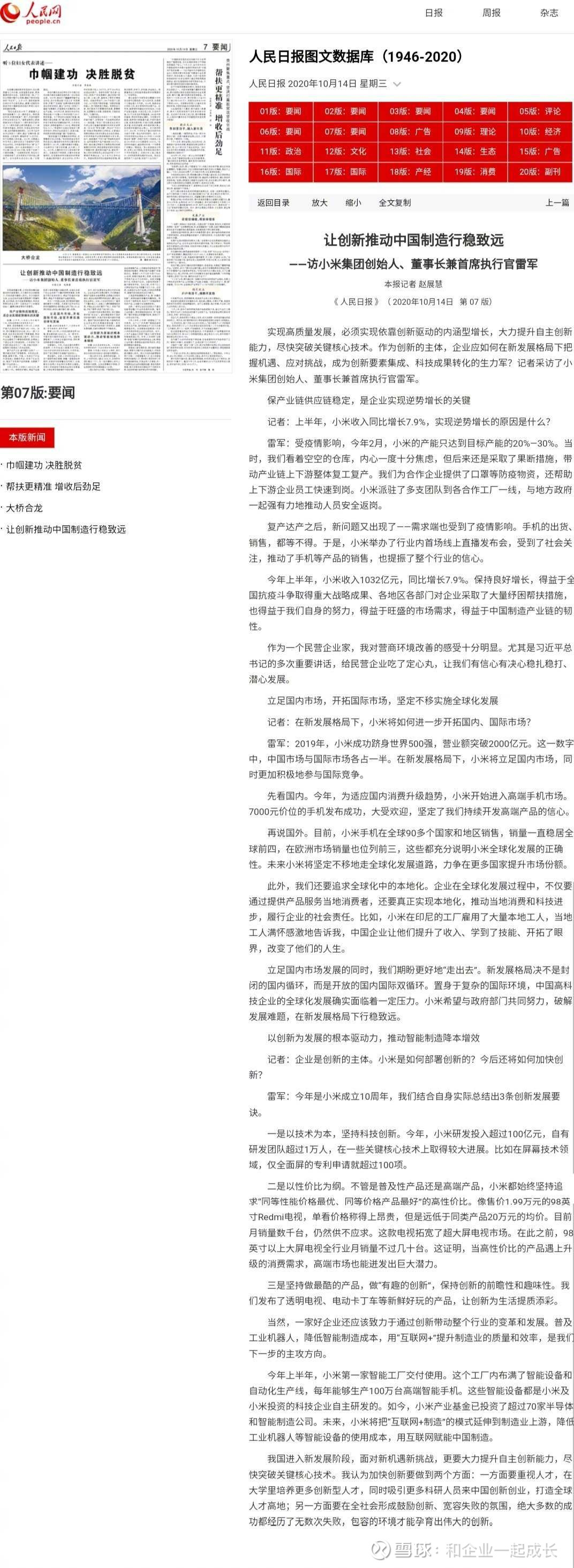 新华社报道完小米,今天人民日报又报道小米,国之栋梁呀