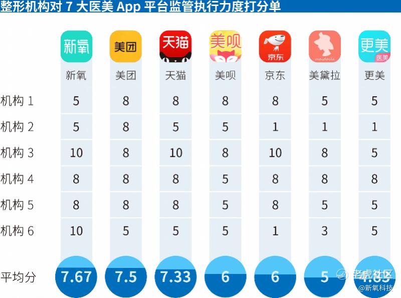 说明:监管领域,是各大医美平台APP差距最小的所在,这说明各大医美平台APP都是按照较严的标准对医疗机构资质、医疗美容从业医师的资质进行审查。