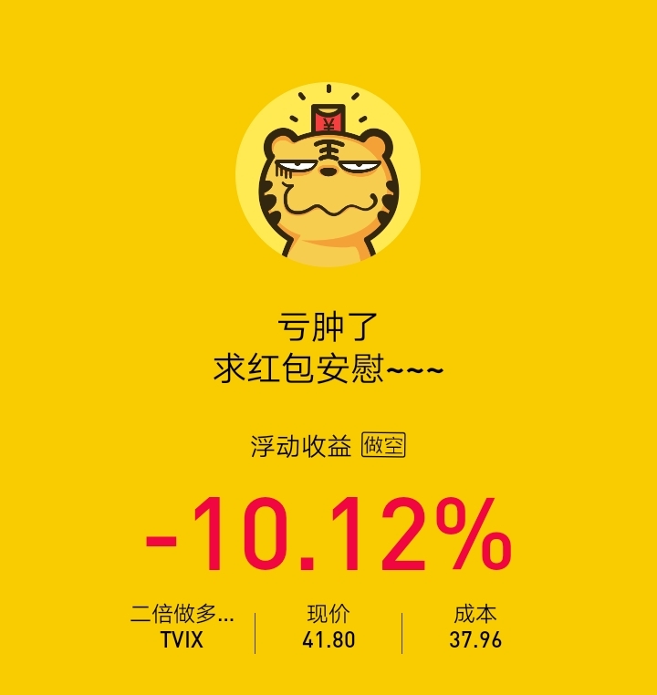 $二倍做多VIX波动率指数短期期权ETN(TVIX)$ 我在空,希望下周美股起来!