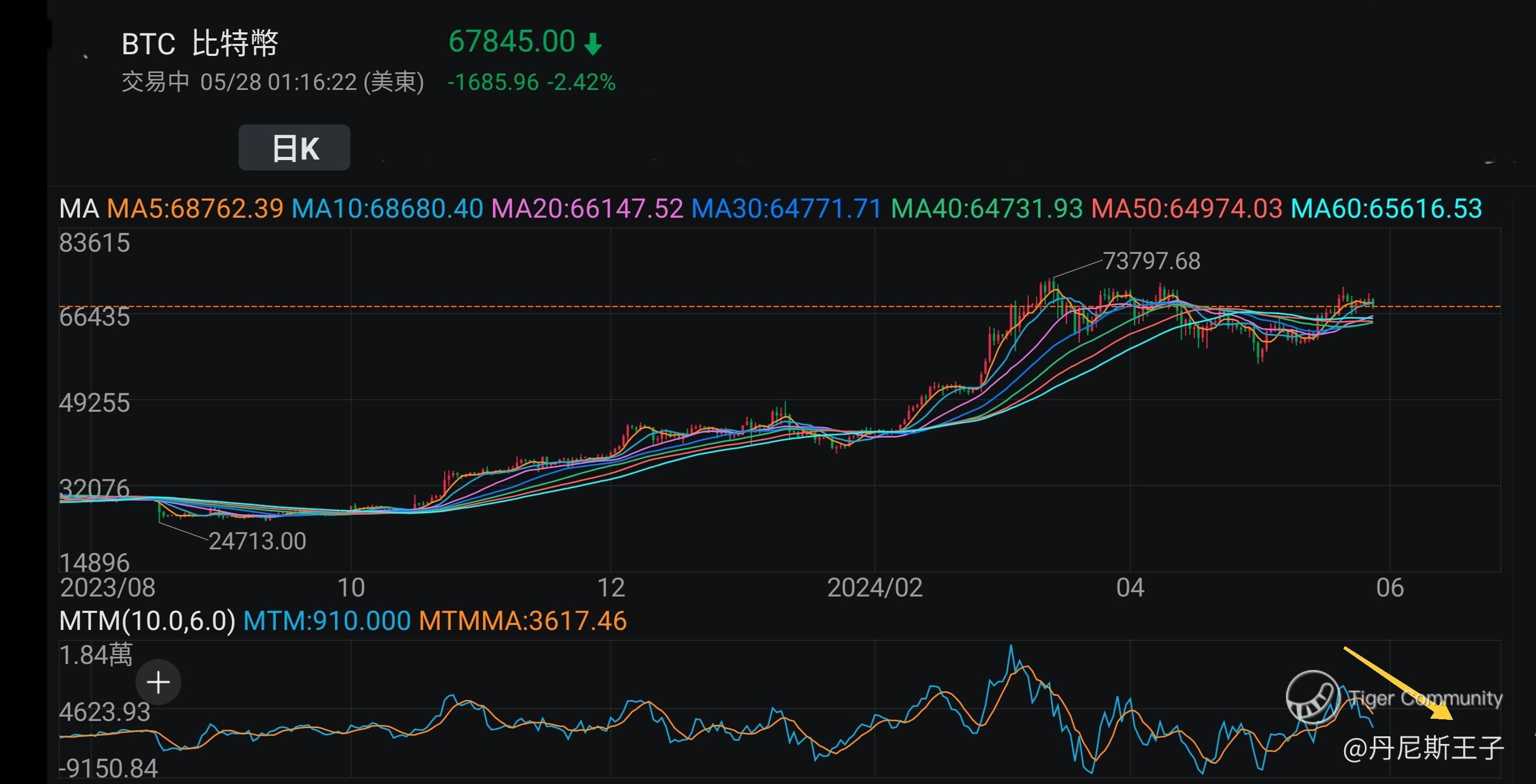 比特币日线图移动平均日线: