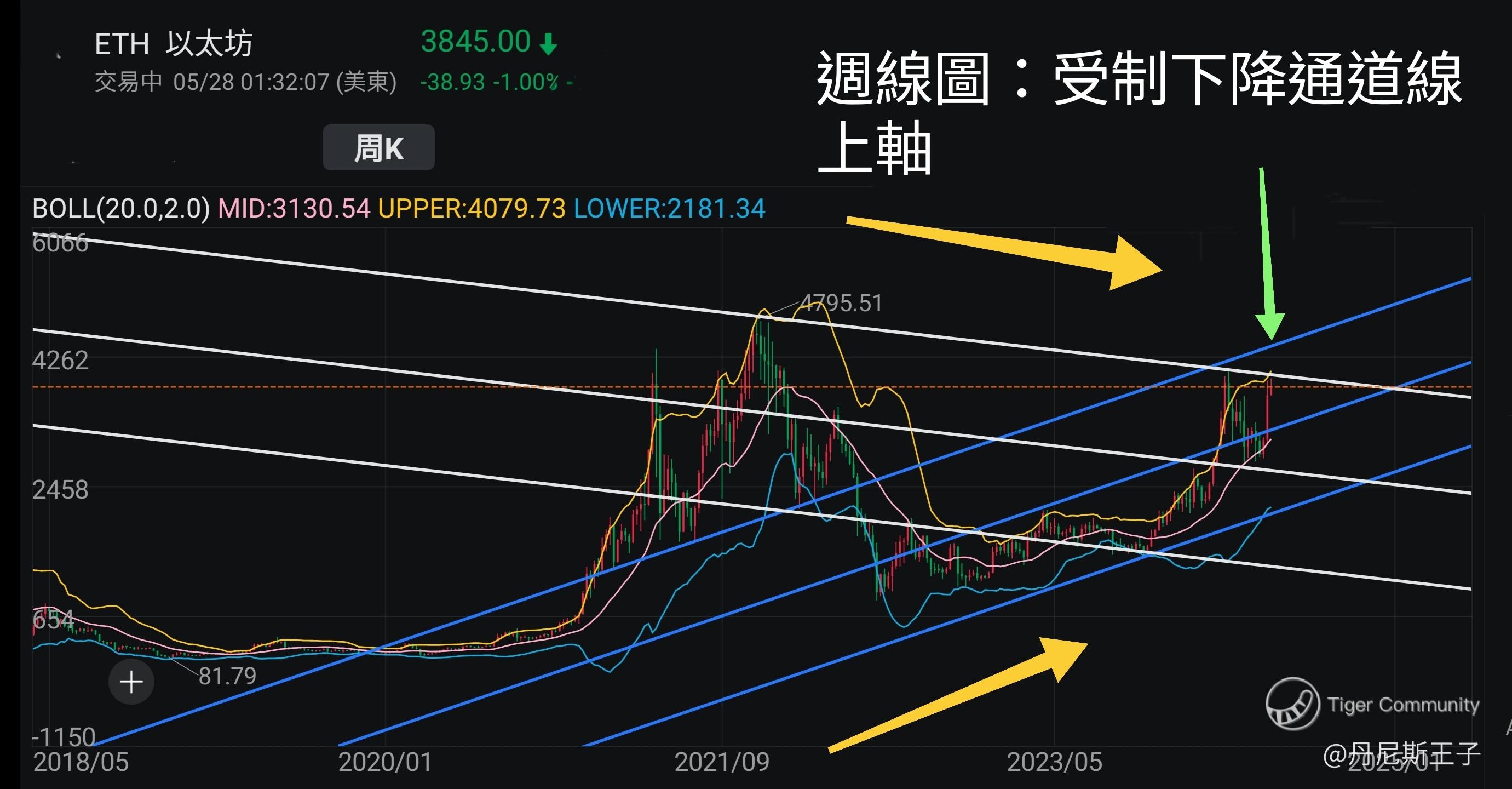 以太币周线图通道线: