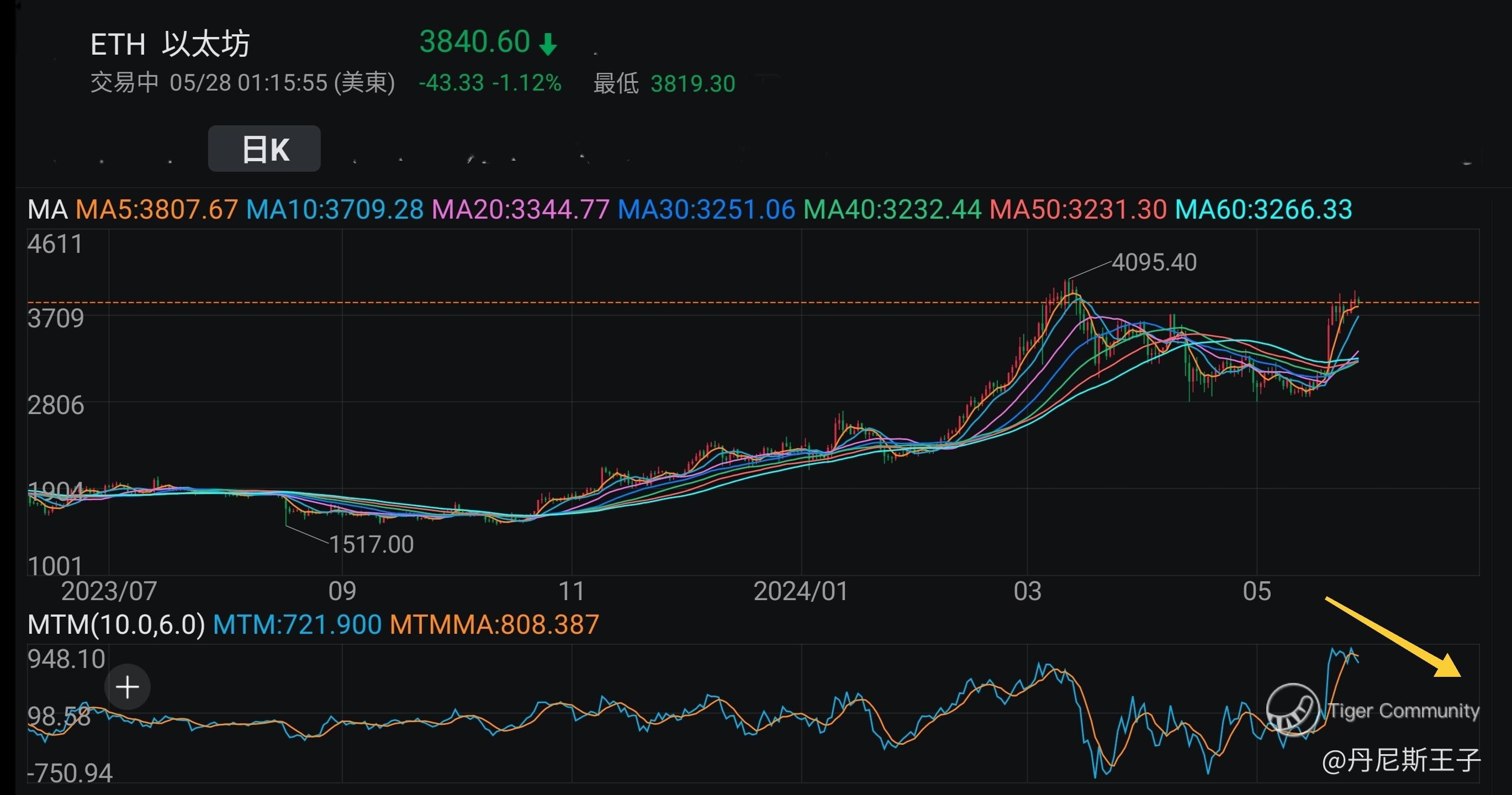 以太币日线图移动平均日线: