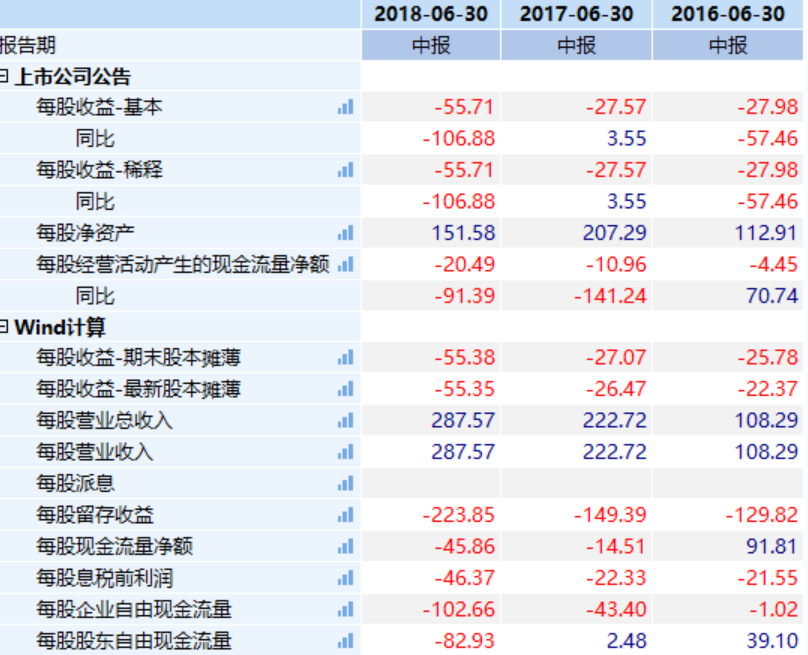 由上图可看出2018年第二季度特斯拉的每股收益较去年同比下降约50%,为-55.71;每股净资产较去年同比下降约27%,为151.58。可见特斯拉今年真的是压力山大,好在钢铁侠的脑残粉多(我也是),此外权益乘数和归属母公司股东净利率占比较前几期有所提升(也就是给股东的钱多)换作其他人估计早就被董事会fired了。