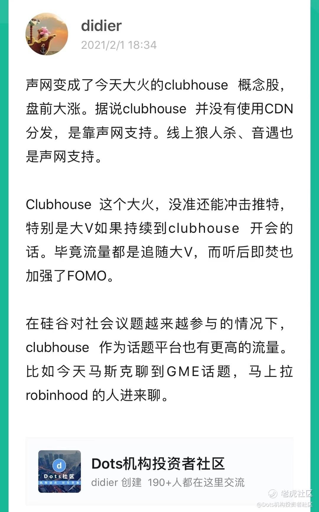 {"i18n":{"language":"zh_CN"},"detailType":1,"isChannel":false,"data":{"magic":2,"id":312454063,"tweetId":"312454063","gmtCreate":1612177389252,"gmtModify":1703758320526,"author":{"id":3546380607467859,"idStr":"3546380607467859","authorId":3546380607467859,"authorIdStr":"3546380607467859","name":"Dots机构投资者社区","avatar":"https://static.tigerbbs.com/56a52c6e6eab6d4b51371a447ec1746c","vip":1,"userType":1,"introduction":"","boolIsFan":false,"boolIsHead":false,"crmLevel":1,"crmLevelSwitch":0,"individualDisplayBadges":[],"fanSize":94,"starInvestorFlag":false},"themes":[],"images":[{"img":"https://static.tigerbbs.com/358156ed925199e06c33182aeece075f","width":"1080","height":"1736"}],"coverImages":[{"img":"https://static.tigerbbs.com/358156ed925199e06c33182aeece075f","width":"1080","height":"1736"}],"extraTitle":"","html":"<html><head></head><body><p>据说没有邀请码的都out了,时代的列车又开过去了... 技术服务商API,不谢</p><p><a href=\"https://laohu8.com/S/API\">$声网(API)$</a></p><p><a href=\"https://laohu8.com/S/GME\">$游戏驿站(GME)$</a></p><p><img src=\"https://static.tigerbbs.com/358156ed925199e06c33182aeece075f\" tg-width=\"1080\" tg-height=\"1736\"></p></body></html>","htmlText":"<html><head></head><body><p>据说没有邀请码的都out了,时代的列车又开过去了... 技术服务商API,不谢</p><p><a href=\"https://laohu8.com/S/API\">$声网(API)$</a></p><p><a href=\"https://laohu8.com/S/GME\">$游戏驿站(GME)$</a></p><p><img src=\"https://static.tigerbbs.com/358156ed925199e06c33182aeece075f\" tg-width=\"1080\" tg-height=\"1736\"></p></body></html>","text":"据说没有邀请码的都out了,时代的列车又开过去了... 技术服务商API,不谢 $声网(API)$ $游戏驿站(GME)$","highlighted":1,"essential":1,"paper":1,"likeSize":11,"commentSize":2,"repostSize":1,"favoriteSize":0,"link":"https://laohu8.com/post/312454063","repostId":0,"isVote":1,"tweetType":1,"viewCount":4253,"commentLimit":10,"likeStatus":false,"favoriteStatus":false,"reportStatus":false,"symbols":["API","GME"],"verified":2,"subType":0,"readableState":1,"langContent":"CN","currentLanguage":"CN","warmUpFlag":false,"orderFlag":false,"shareable":true,"causeOfNotShareable":"","featuresForAnalytics":[],"commentAndTweetFlag":false,"andRepostAutoSelectedFlag":false,"upFlag":false,"length":91,"xxTargetLangEnum":"ZH_CN"},"commentList":[{"id":3456188,"commentId":"3456188","gmtCreate":1612186023394,"gmtModify":1612186023394,"authorId":740450932848,"author":{"id":740450932848,"idStr":"740450932848","authorId":740450932848,"name":"33_Tiger","avatar":"https://static.tigerbbs.com/aa2c2a58a713dadbb19ede7c4c37d61d","vip":2,"currentWearingBadge":{"badgeId":"35ec162348d5460f88c959321e554969-3","templateUuid":"35ec162348d5460f88c959321e554969","name":"传说交易员","description":"证券或期货账户累计交易次数达到300次","bigImgUrl":"https://static.tigerbbs.com/656db16598a0b8f21429e10d6c1cb033","smallImgUrl":"https://static.tigerbbs.com/03f10910d4dd9234f9b5702a3342193a","grayImgUrl":"https://static.tigerbbs.com/0c767e35268feb729d50d3fa9a386c5a","redirectLinkEnabled":0,"hasAllocated":1,"isWearing":1,"stampPosition":0,"hasStamp":0,"allocationCount":1,"allocatedDate":"2021.12.21","exceedPercentage":"93.17%","individualDisplayEnabled":0,"individualDisplaySort":0,"categoryType":1100},"hat":"https://static.tigerbbs.com/306aa047bc14b6942cda1aed925cf8c3","crmLevel":12,"crmLevelSwitch":0,"individualDisplayBadges":[]},"repliedAuthorId":0,"objectId":312454063,"objectIdStr":"312454063","type":1,"supId":0,"supIdStr":"0","prevId":0,"prevIdStr":"0","content":"竟是因为clubhouse[微笑]","text":"竟是因为clubhouse[微笑]","html":"竟是因为clubhouse[微笑]","likeSize":0,"commentSize":0,"subComments":[],"verified":10,"allocateAmount":0,"commentType":"valid","coins":0,"score":0,"disclaimerType":0}],"isCommentEnd":false,"isTiger":false,"isWeiXinMini":false,"url":"/m/post/312454063"}