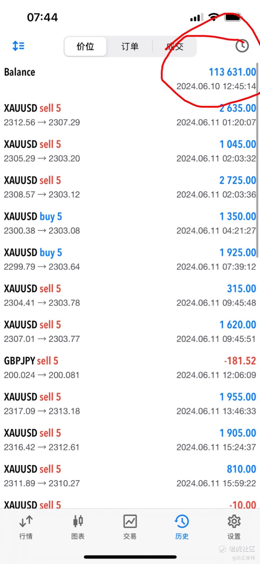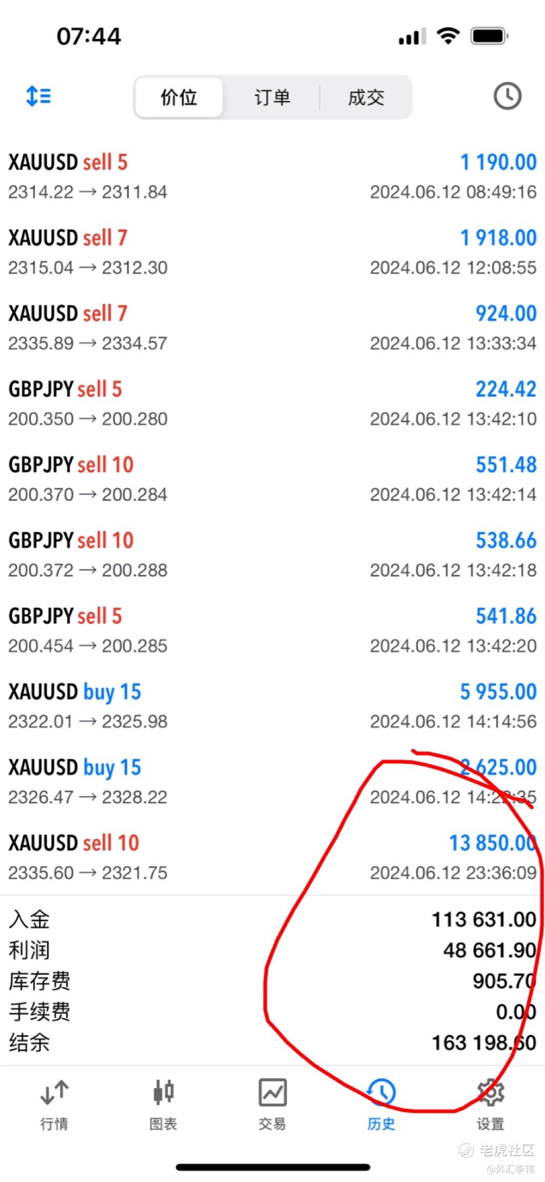 昨晚睡前下了一单黄金空,刚起来看下来单子获利1.3万美元。6月10号入金账户经过2个交易日的操作,目前盈利4.8万美元。