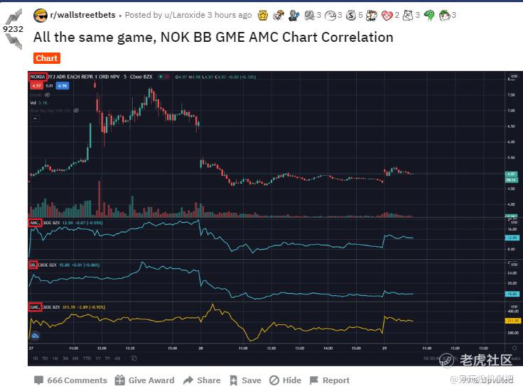 $AMC院線(AMC)$$黑莓(BB)$$遊戲驛站(GME)$三个股票走势一模一样,就是机构不断在换手,砸盘,尝试把我们手中的低价票拿去平仓,那些还在看怎么不涨啊?怎么又砸盘那些智商先弄好再来玩,现在就是等空狗交割,等他们手中的大单强平不得不买我们手上的高价票去还,懂吗?所以不是看涨多少跌多少,就是等机构空单交割那天要买我们大量高价票