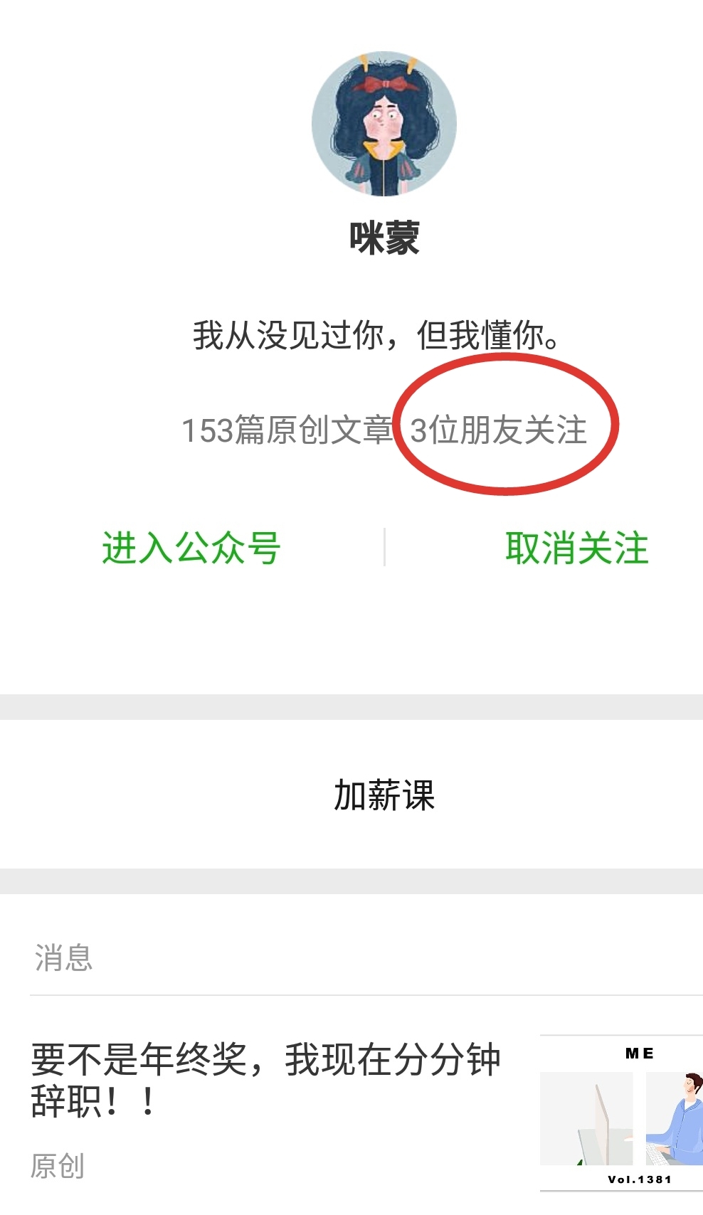 然后就被活生生打脸了,我好友也不多,也就30多个,然后我搜搜咪蒙居然显示有三个好友关注了。