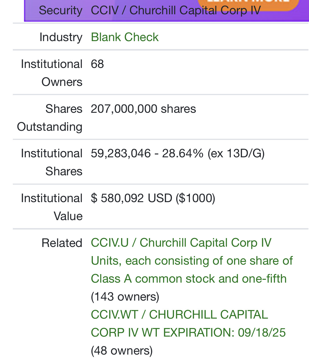 $Churchill Capital Corp IV(CCIV)$来来一起看看,机构的参与热情奔放到达了极点!其他SPAC有这样的表现吗?Follow the money!
