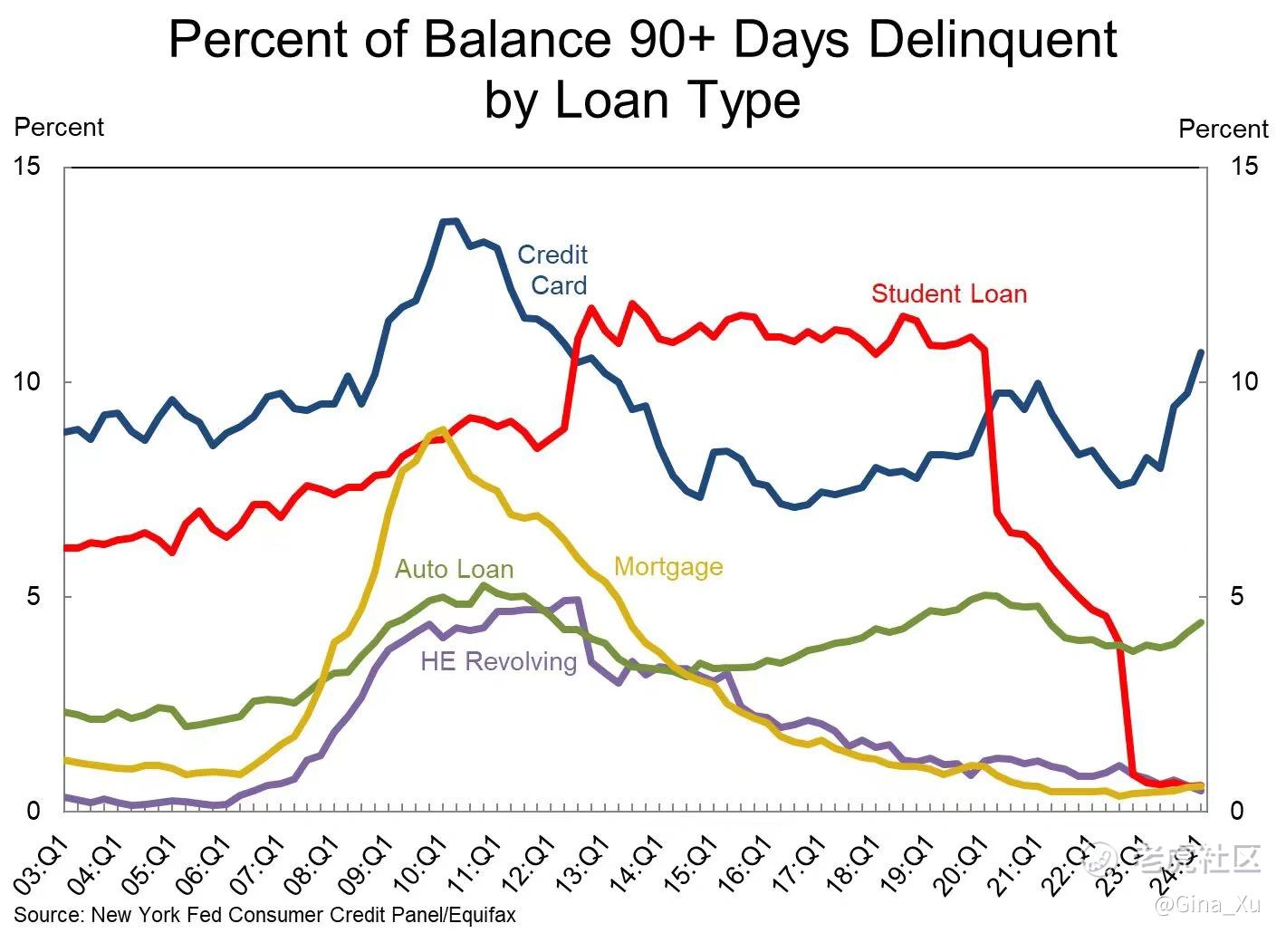 图五,美国个贷中信用卡、车贷不良率高企,且仍在不断上升。